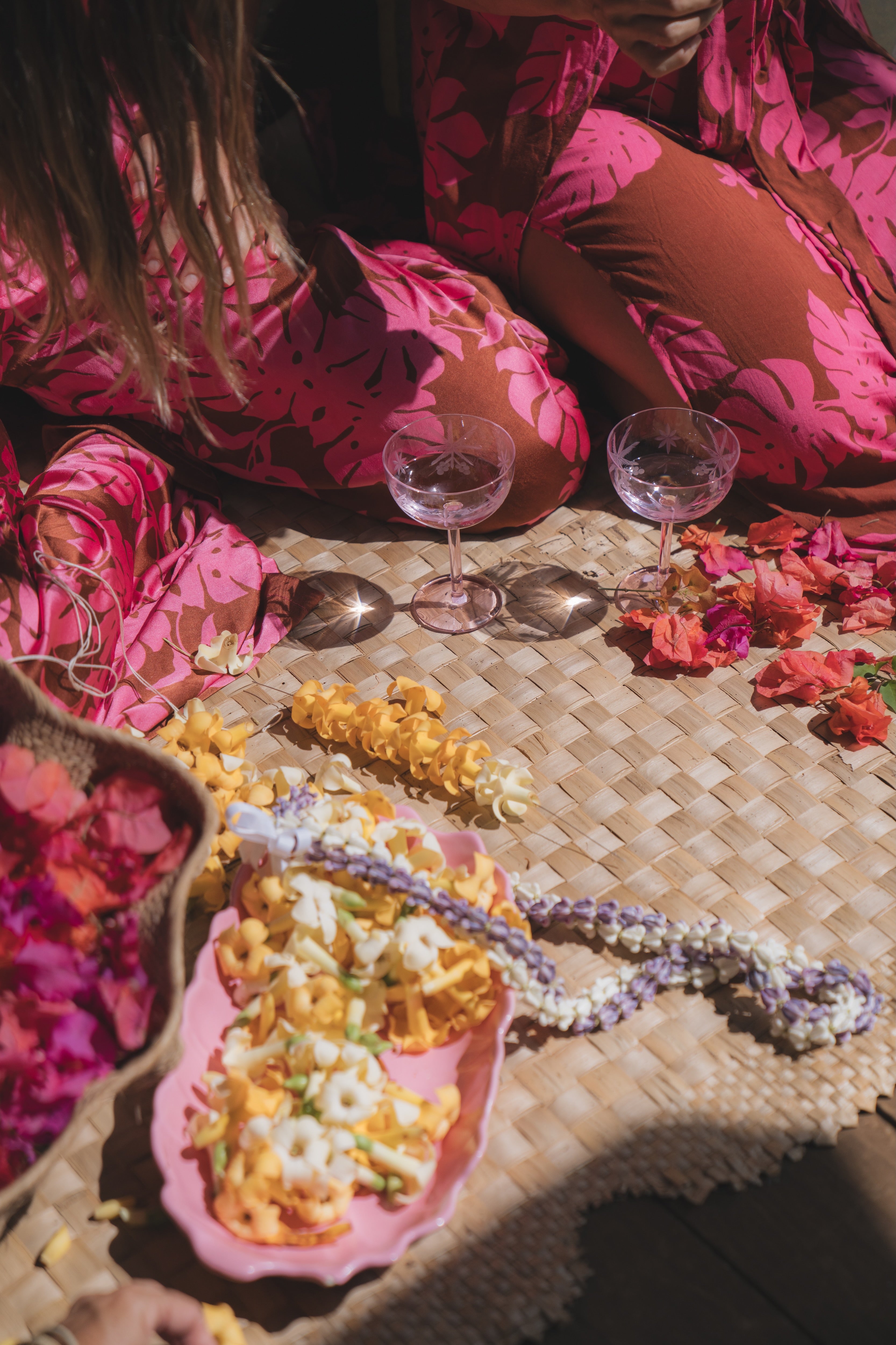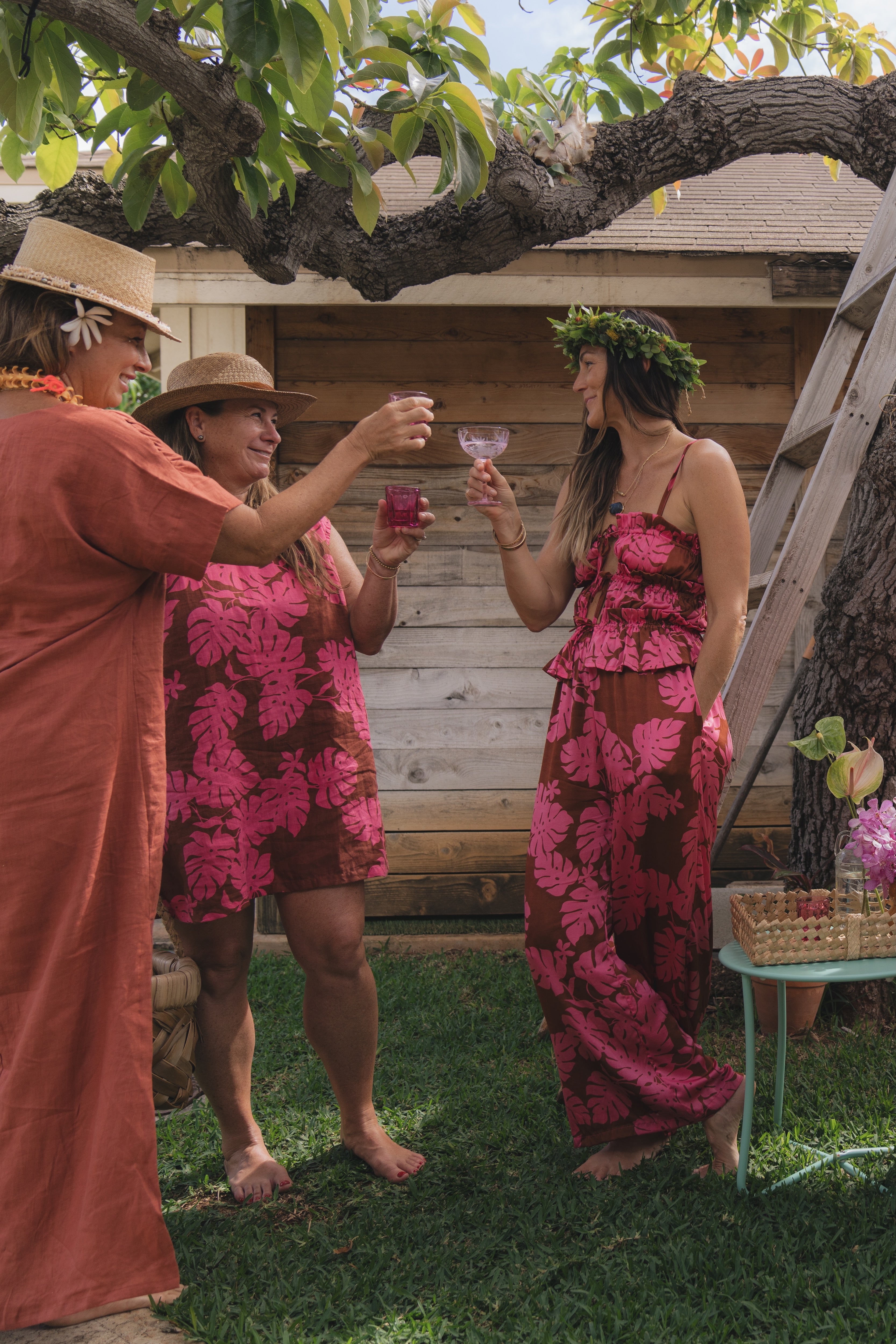 Launched on International Women’s Day, The Wahine Collection is a toast to our sisterhood. Shot amidst the sun-drenched beauty of Hawaii, the campaign tells the story of girlfriends gathering, sipping cocktails, and weaving lei as laughter fills the air.