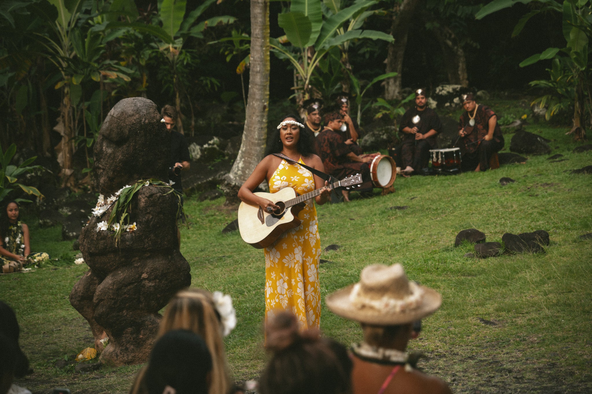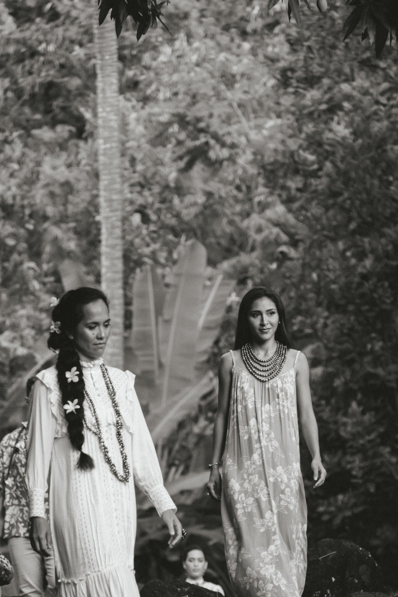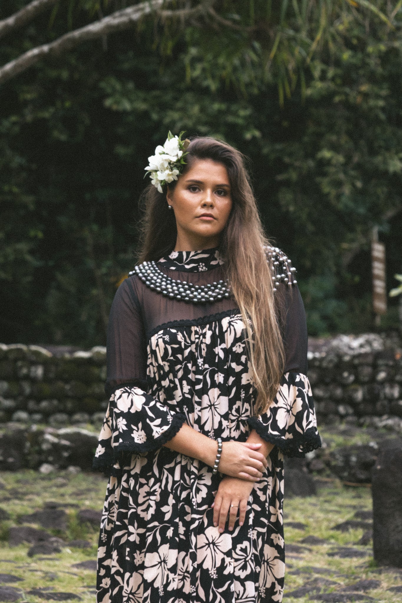 The festivity began with a powerful 'ōrero by our radiant ambassador, Hinatea Colombani, whose words set the tone for a celebration of culture, artistry, and ancestral wisdom. At the heart of the experience was Matavai, EIMEO’s new collection, a luminous dialogue between heritage and contemporary design. The collection revealed Heritage mu‘umu‘u dresses, flowing with elegance and nostalgia, alongside modern silhouettes that reimagined Polynesian style for today.